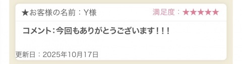 そして、Y様から口コミをいただけるなんて感激しております💖